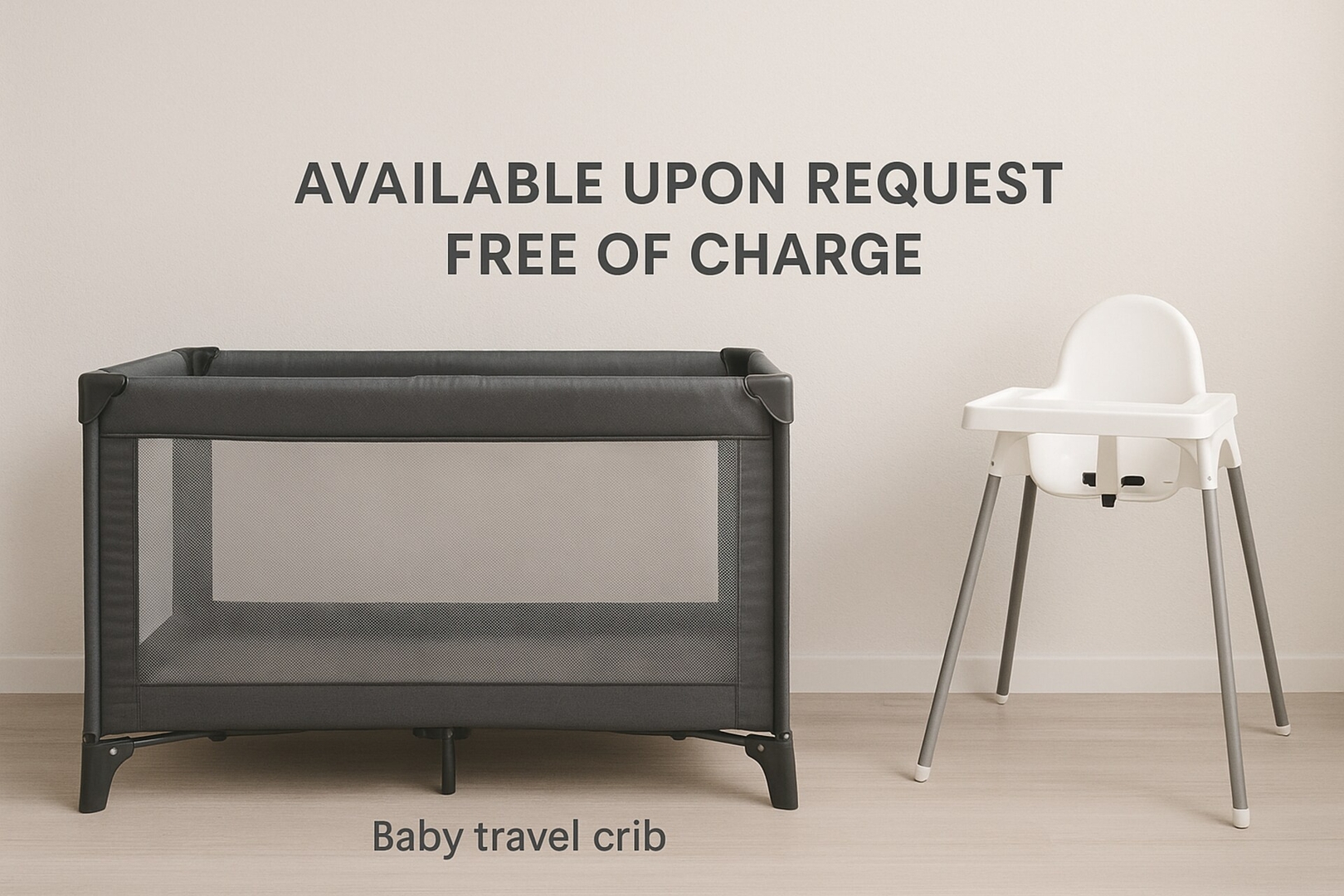 ? We’re happy to provide a baby crib and high chair at no extra charge — just let us know at least one day in advance.